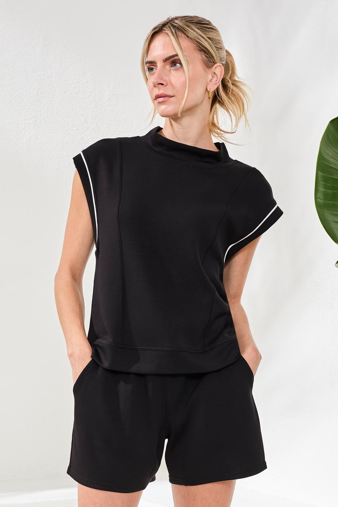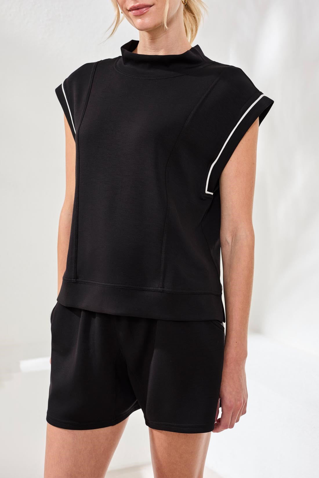 Techno Lux Mock Neck Contrast Piping