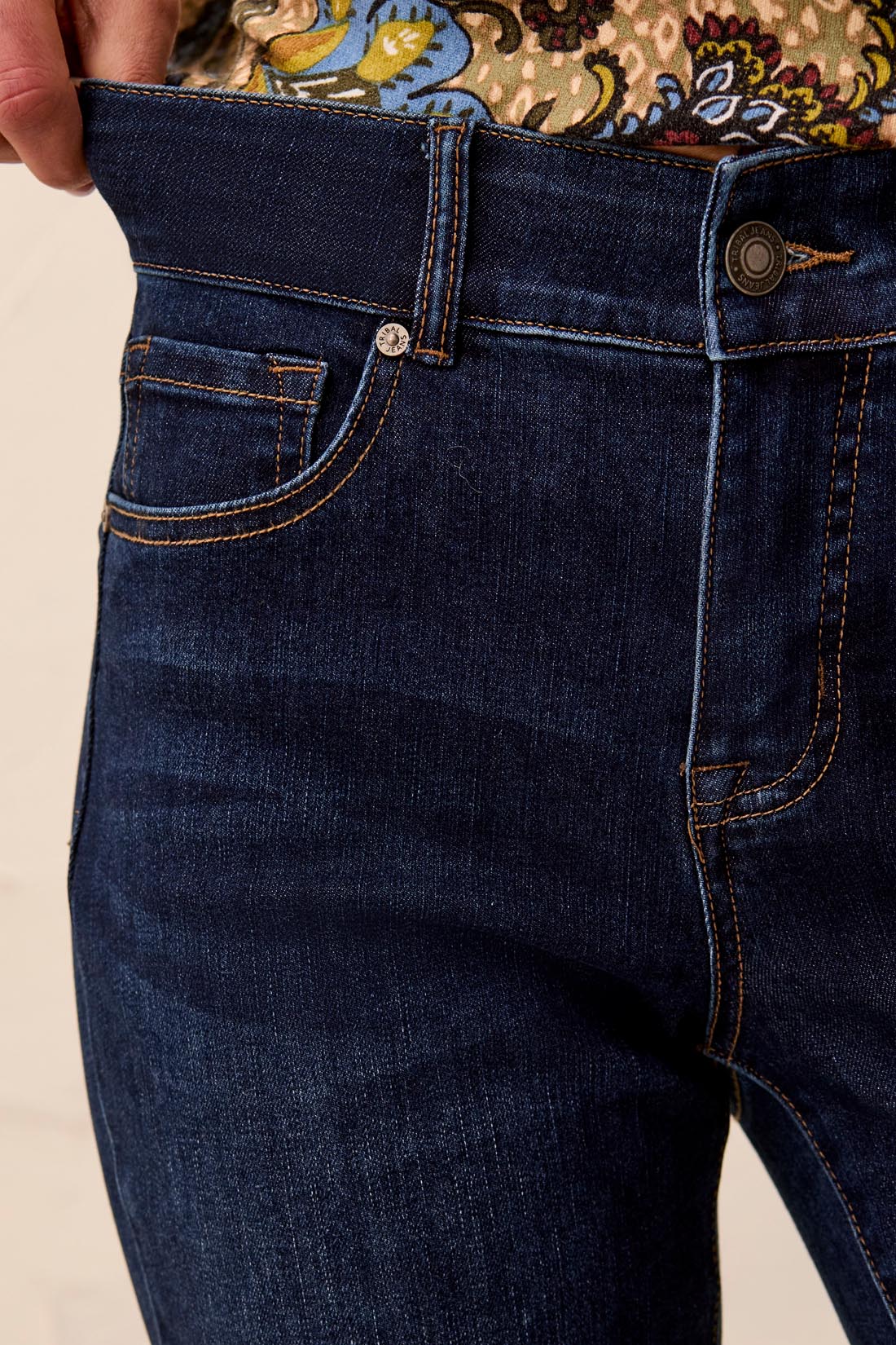 Our Sophia curvy fit straight leg jeans are designed to flatter in all the right places. With a comfortable elastic waistband that defines the waist, subtle darting above the back pockets for a lifting effect, and soft stretch denim that moves with you while maintaining its shape, this style offers the perfect blend of structure and comfort. Finished with a mid-rise, classic five-pocket design, and a 32" full length, it's the pair you’ll reach for again and again.