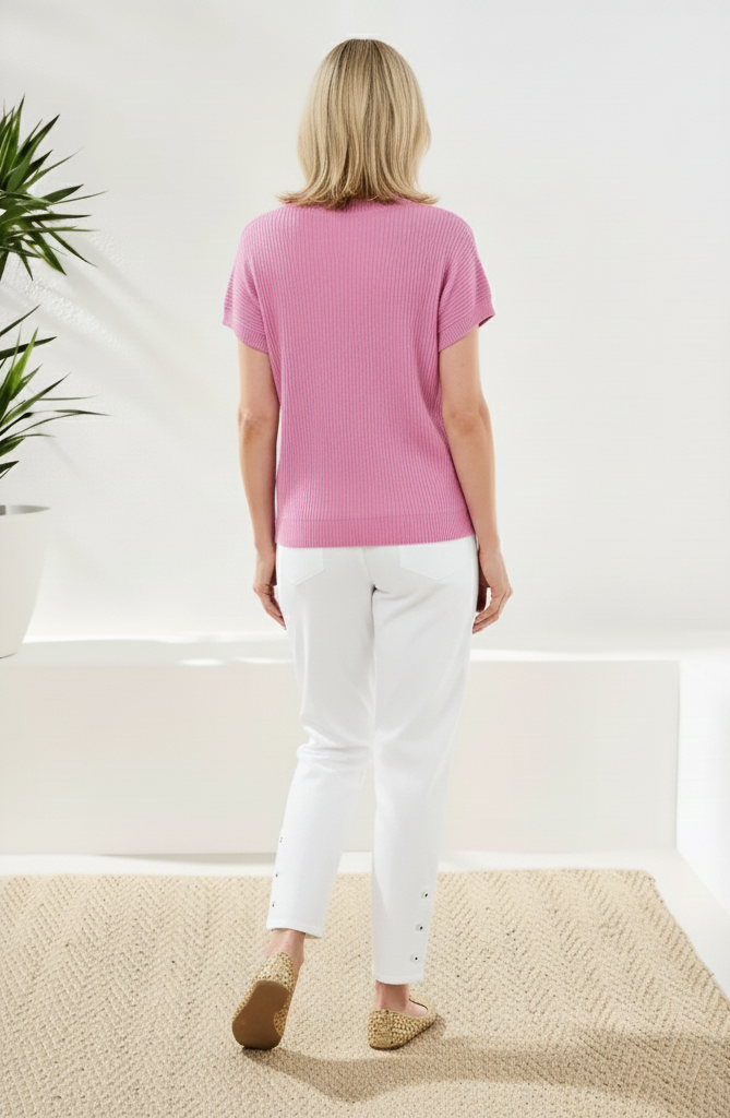 Enjoy effortless style in this dolman sweater, crafted from a soft cotton blend yarn. Short sleeves, a relaxed fit, and a front pocket deliver comfort and versatility for work, travel, or weekends on the go.