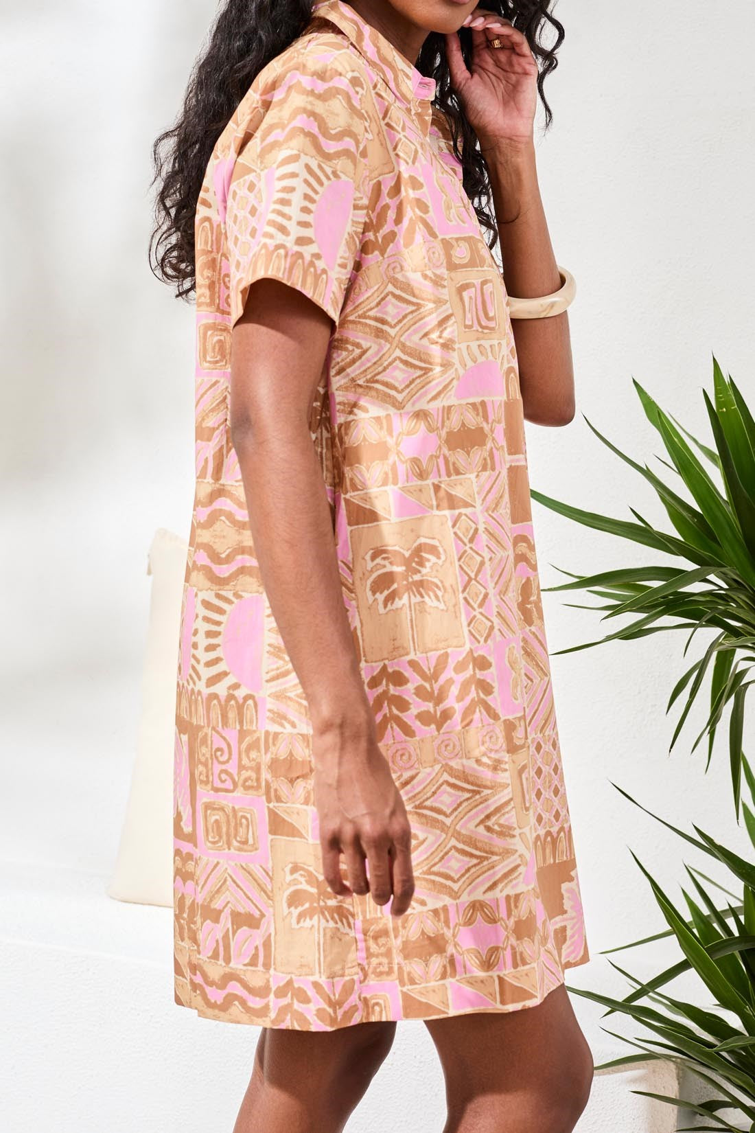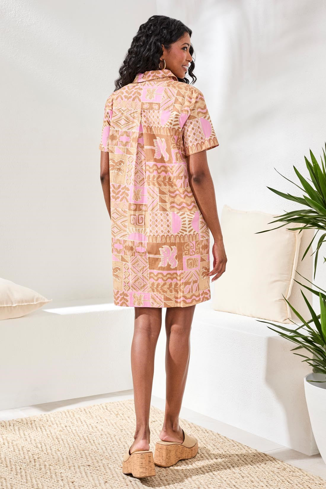 Bright prints and crisp cotton poplin create a statement in this short sleeve button up dress. The airy fit and 36" length are perfect for sunny days, adding polish and playful style to your warm-weather wardrobe.