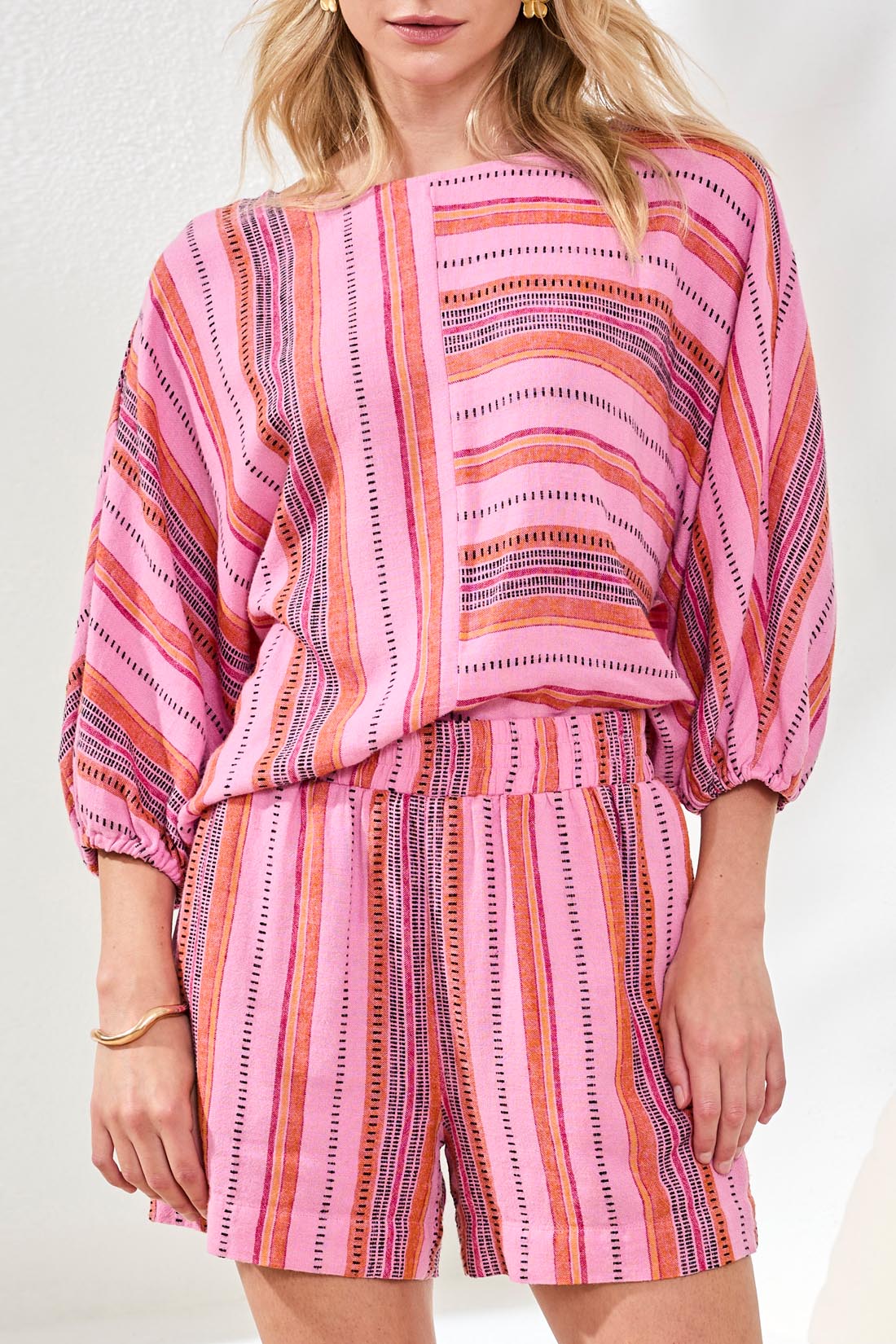 Experience easy comfort with this elastic waist PULL-ON short, featuring yarn-dye stripes in a linen-rayon blend. The wide leg and breezy shape offer relaxed movement, while the flexible waistband ensures a comfortable, stay-put fit for all your casual spring adventures.