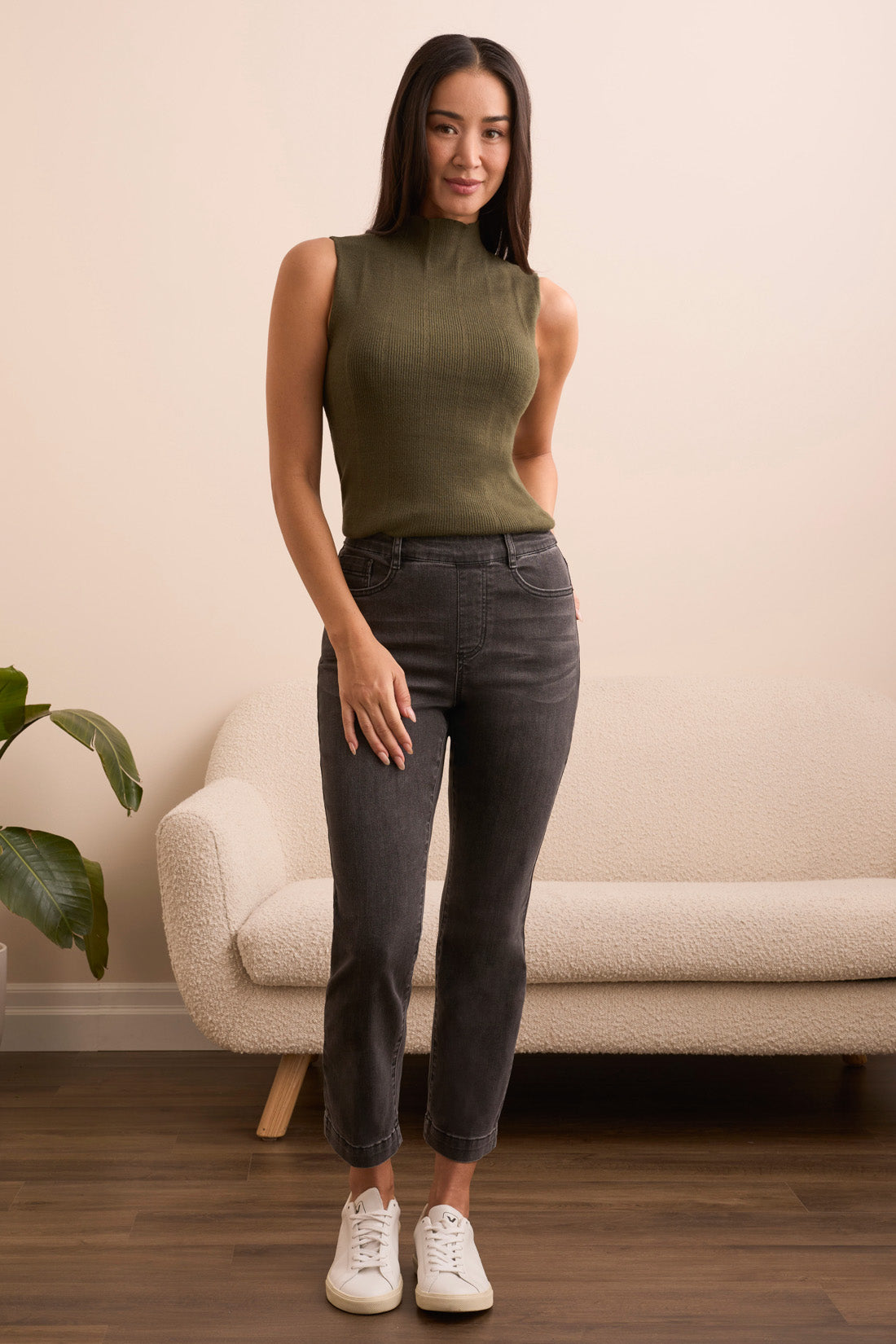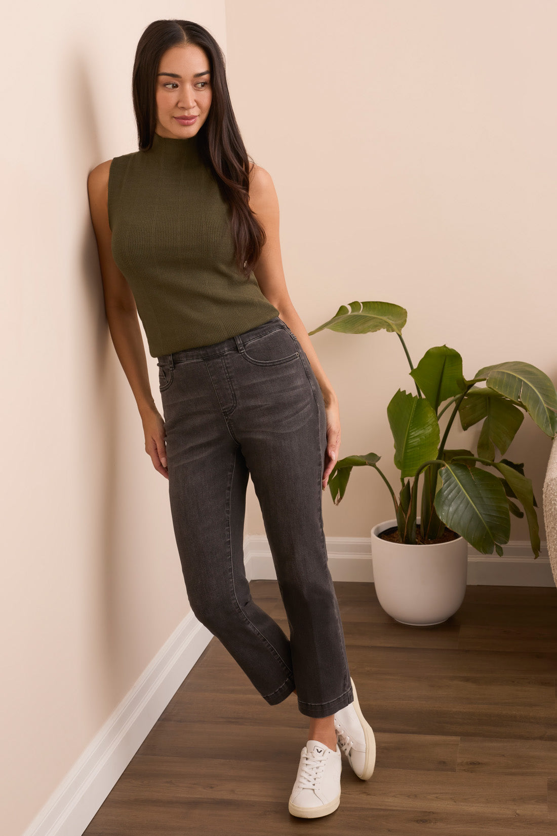 Infuse your day with casual comfort in these mid-rise jeans, crafted from stretch denim. The straight-leg cut features an elegant crease detail along the leg for a poised finish, while the well-placed pockets offer practicality without compromising style.