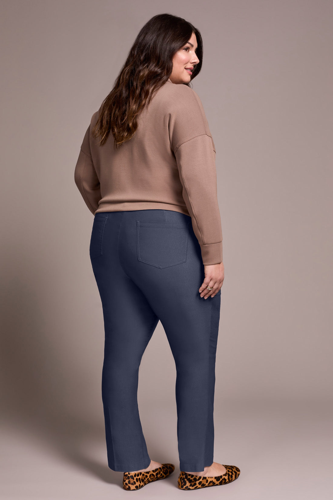 Enhance your silhouette in these sleek slim boot-leg pants, designed with a pull-on waistband featuring FLATTEN IT® technology for comfortable support and a smooth fit. The stretch bengaline twill fabric offers effortless flexibility, while square pockets add a touch of practical style.