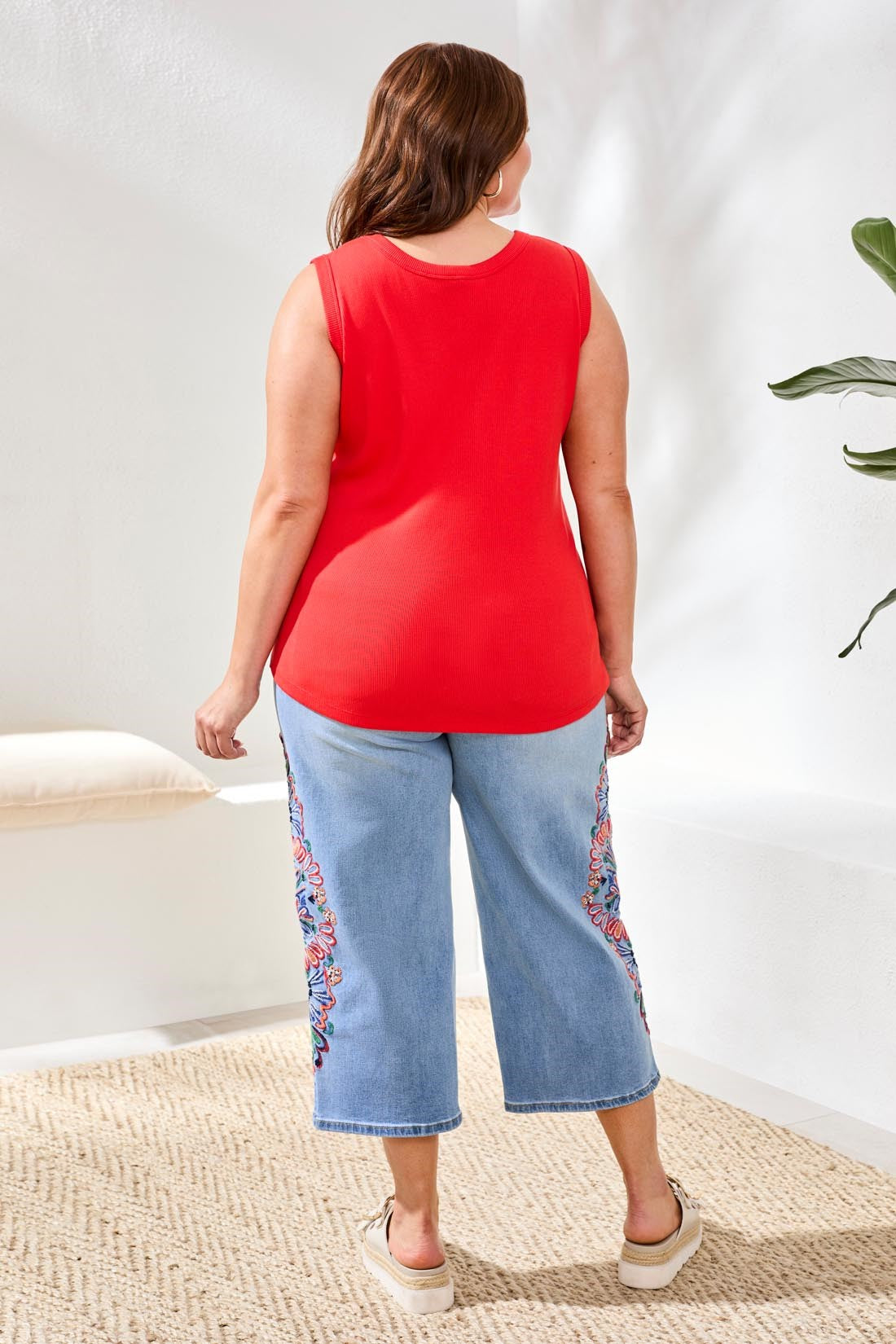 Enjoy effortless versatility in this size inclusive wear-two-ways tank, designed to be worn boatneck or scoop neck for multiple styling options. Crafted from premium stretch knit, this piece delivers comfort, flexibility, and a flattering fit for every shape.