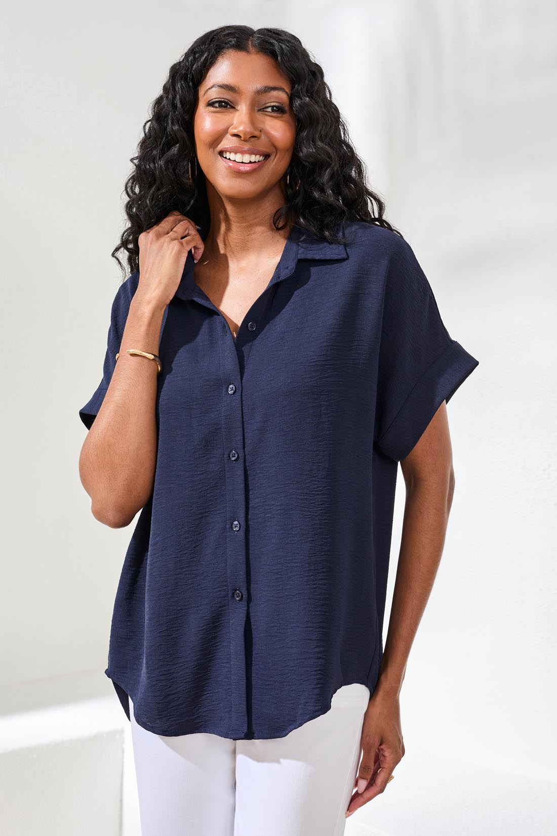 Designed in our airy Airflow woven fabric, this relaxed short-sleeve shirt delivers breathable comfort with a drapey, oversived fit. Lightweight and effortlessly versatile, it moves easily from casual outfitting to polished, everyday looks all season long.