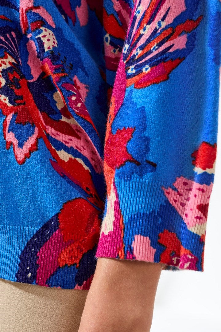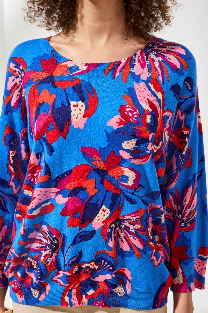 Opt for this relaxed crewneck sweater when you desire casual coziness in a soft yarn blend. The all-over floral print adds an uplifting touch to your look, while drop shoulders enhance comfort and ease of movement. Three-quarter-length sleeves provide the perfect amount of coverage.