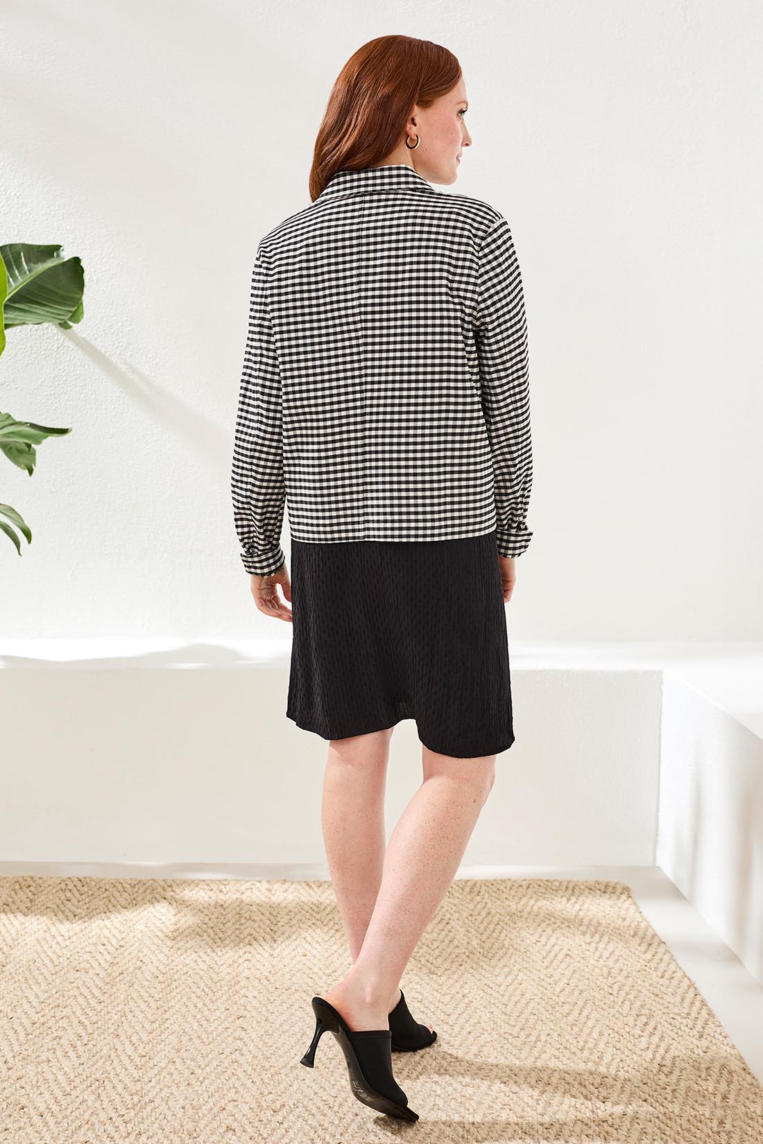Add a playful edge to your wardrobe with this button-front jacket, featuring a classic gingham pattern and practical pockets. Crafted in a durable cotton blend, it layers beautifully for a versatile, updated look in any season.
