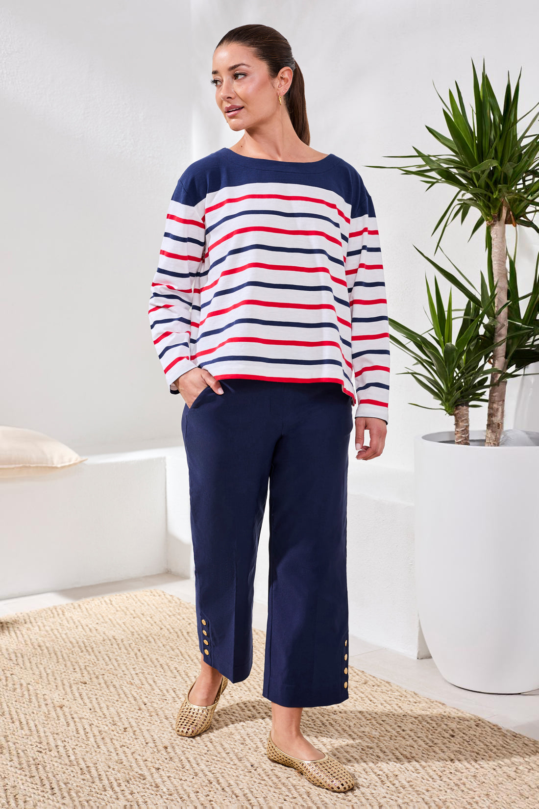 Wide leg CAPRIS styling meets all-day comfort in these pull-on PANTS, made from soft, stretch century twill. The relaxed fit and smooth finish offer effortless style for warm weather, travel, or casual weekends all season.