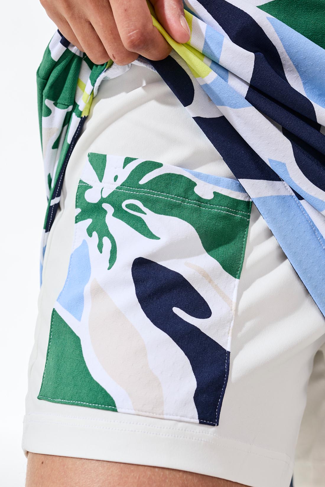 A vibrant skort designed for movement and style. Featuring a pull-on waistband for a smooth, comfortable fit, it includes functional zip pockets with a rounded hem finish for a modern touch. Built-in shorts offer confident coverage and ease, while the lively brushstroke print brings a bold, tropical energy to everyday wear.