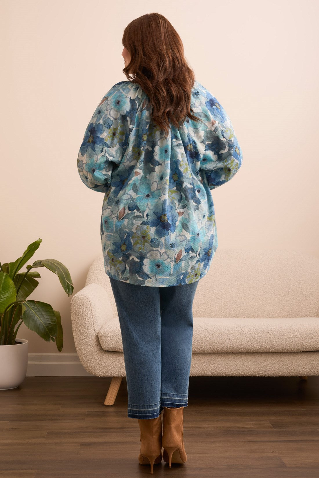 Infuse your look with a burst of vibrant charm in this relaxed blouse, featuring a lively floral pattern and airy mesh accents. The mocked detail along the neckline and sleeves creates a flattering silhouette, perfect for a laid-back pop-over style.