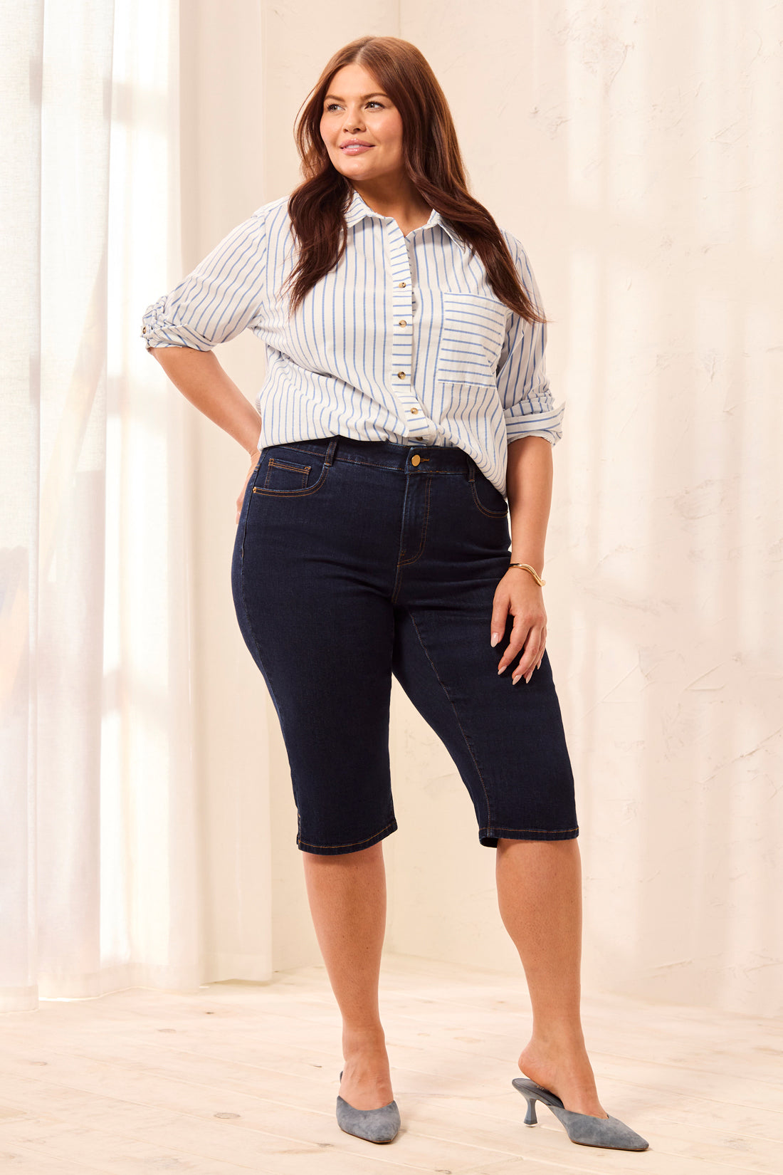 Size Inclusive Comfort Stretch Sophia Curvy Slim Denim Capris