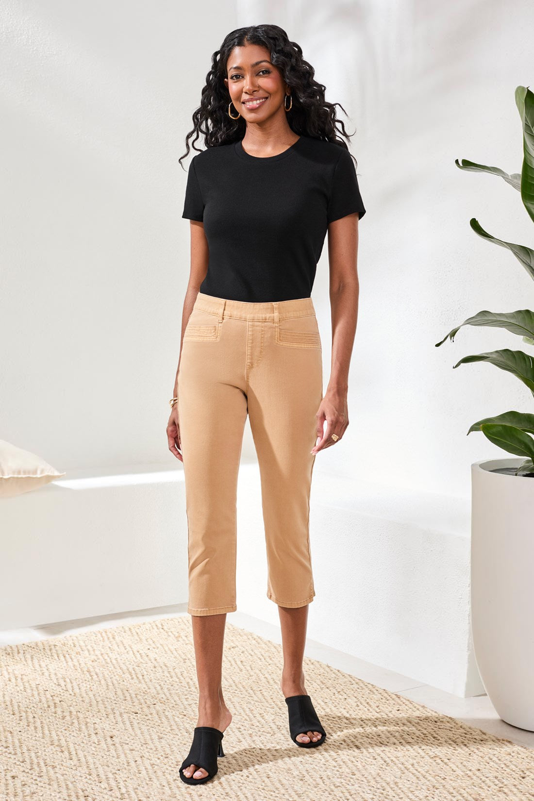A streamlined slim capri in Vision Stretch Comfort Denim, these pull-on pants feature an easy waistband and a modern cut for everyday versatility. Enjoy lightweight comfort, flexible movement, and a crisp, polished look all season long.