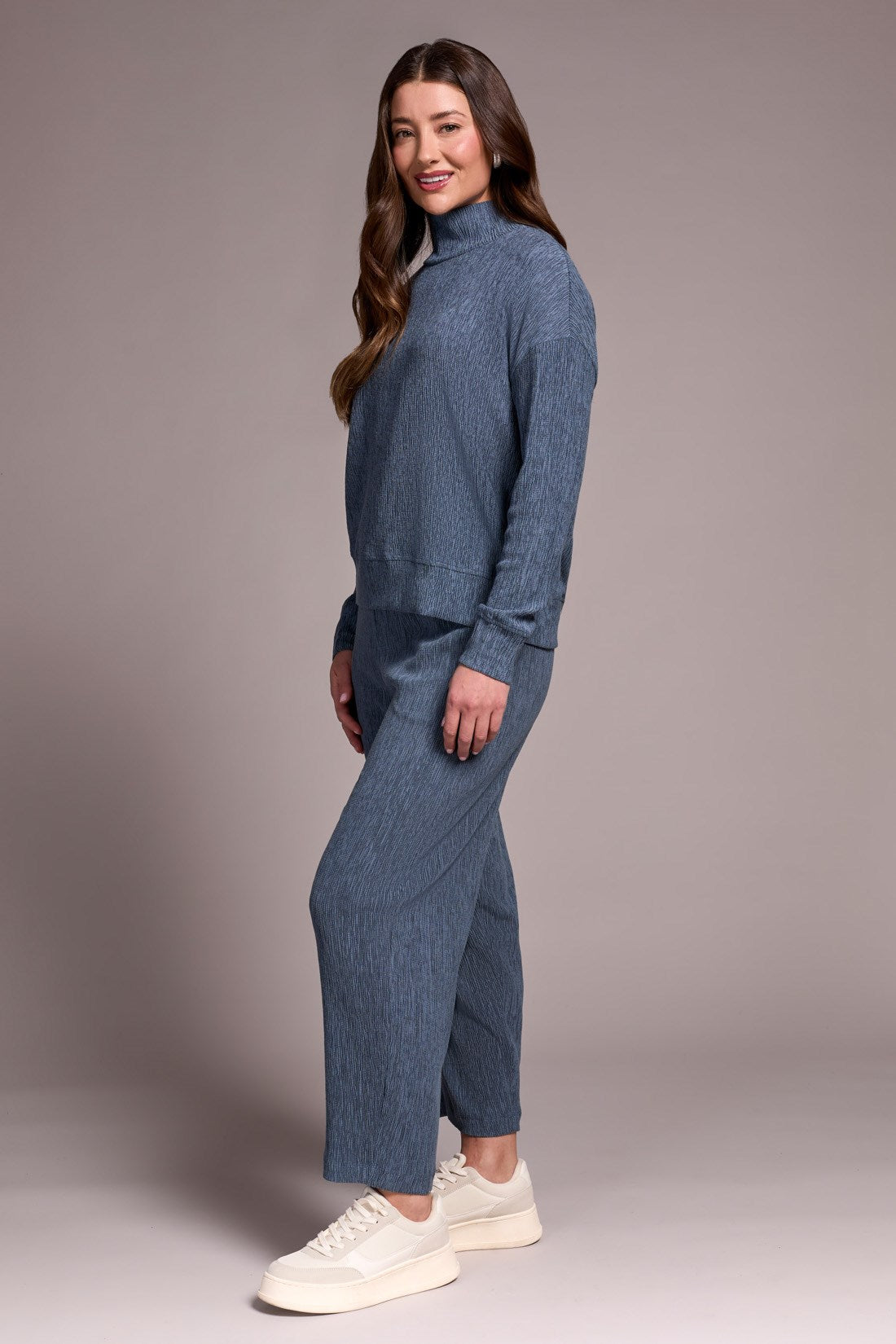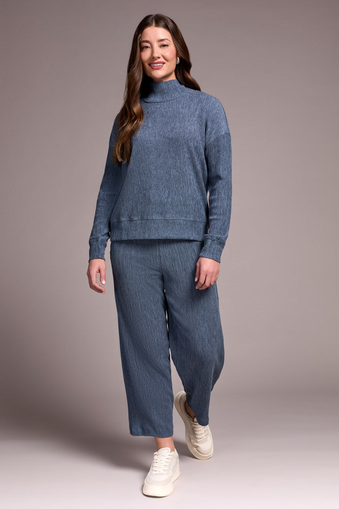 Add a touch of refined charm to your wardrobe with this sophisticated top, where a sleek mock neckline and long sleeves offer both warmth and style. The two-tone crinkle knit fabric creates rich, textured depth, while the relaxed fit drapes beautifully for a look that’s as polished as it is comfortable.