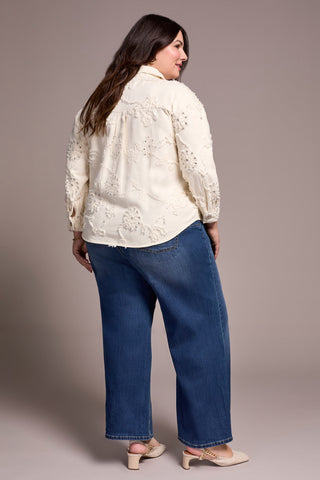 Blouse En Tricot Jacquard Pelucheux Avec Col Montant Et Manches Longues