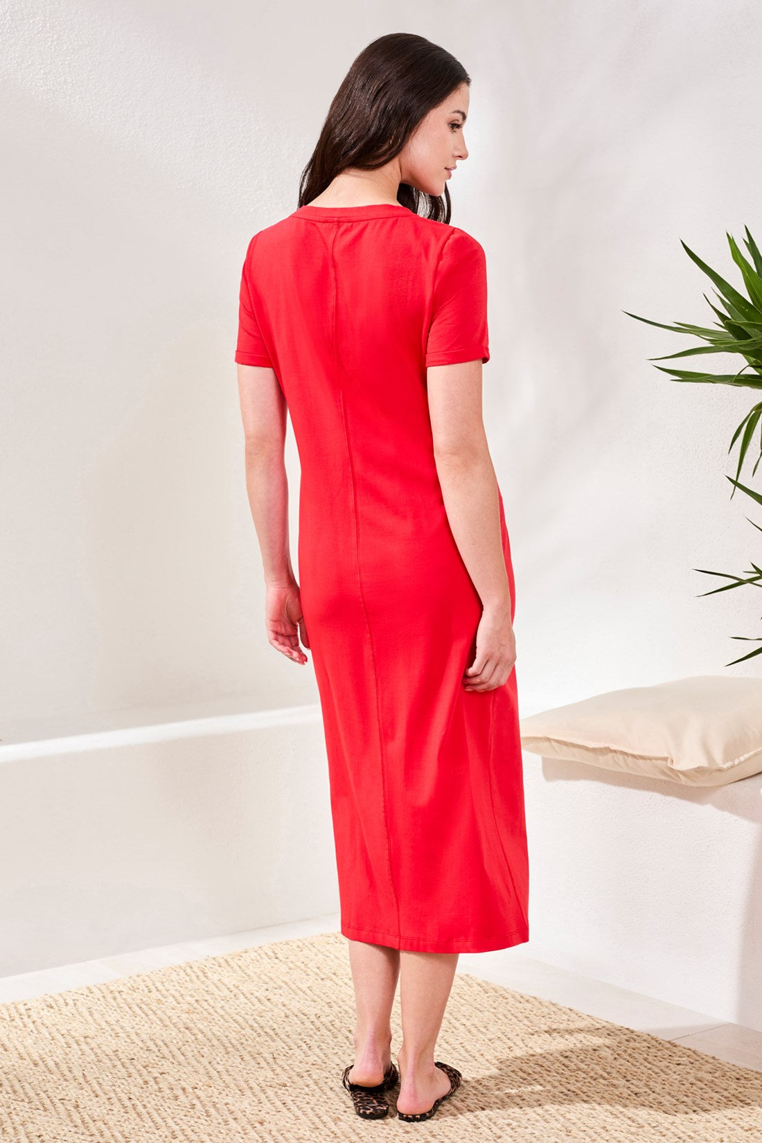 Une robe midi féminine en jersey doux, rehaussée d’un détail nœud élégant sur le devant. Confortable et flatteuse, idéale pour le quotidien.