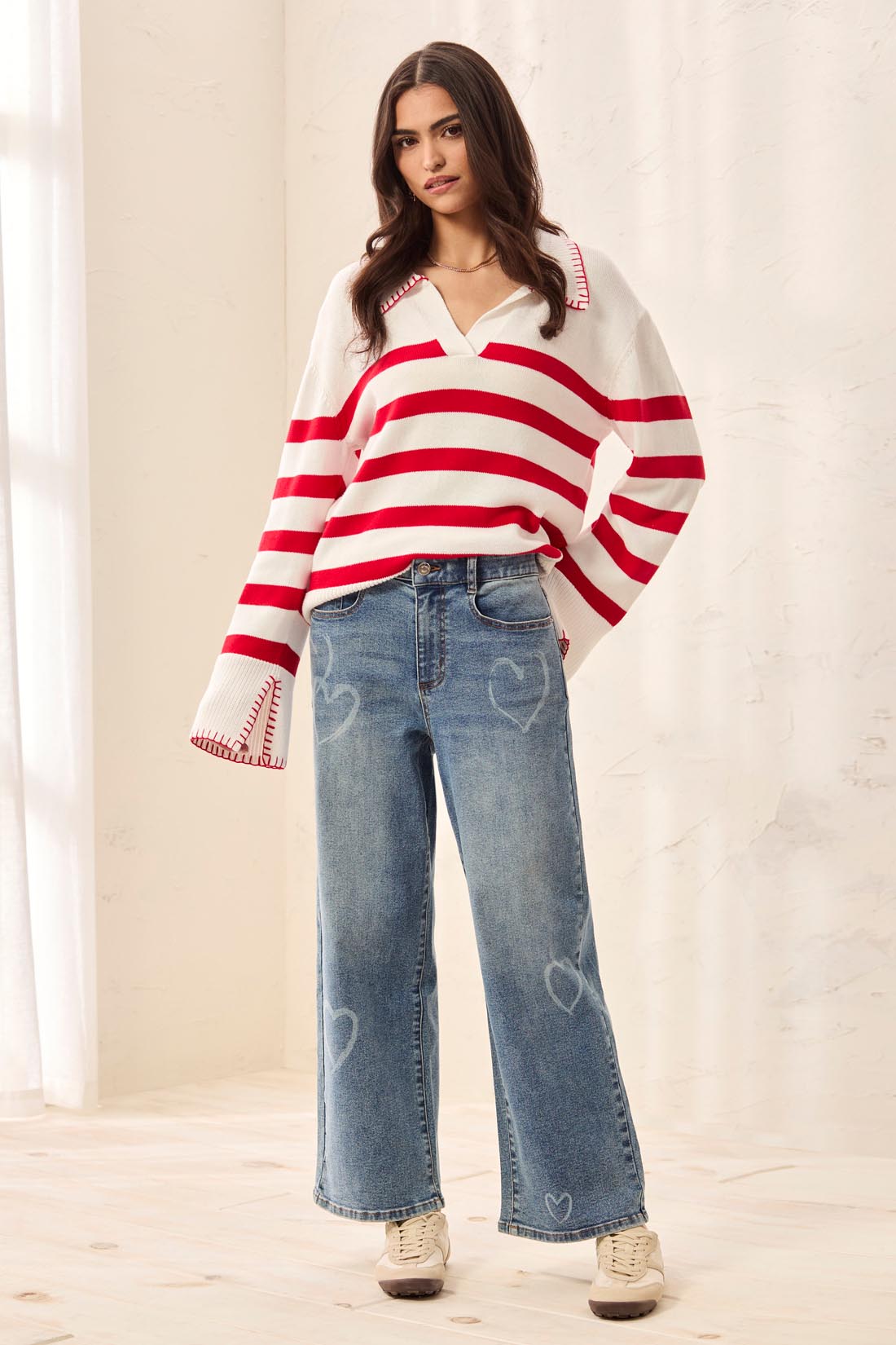 Cultivez une élégance ludique avec ce denim super droit imprimé, conçu en denim extensible pour la flexibilité et la tenue de forme. La coupe ajustée met en valeur les courbes, tandis que la jambe droite et l’imprimé cœur exclusif distinguent ce modèle. Pensé pour un confort quotidien et un style remarquable.