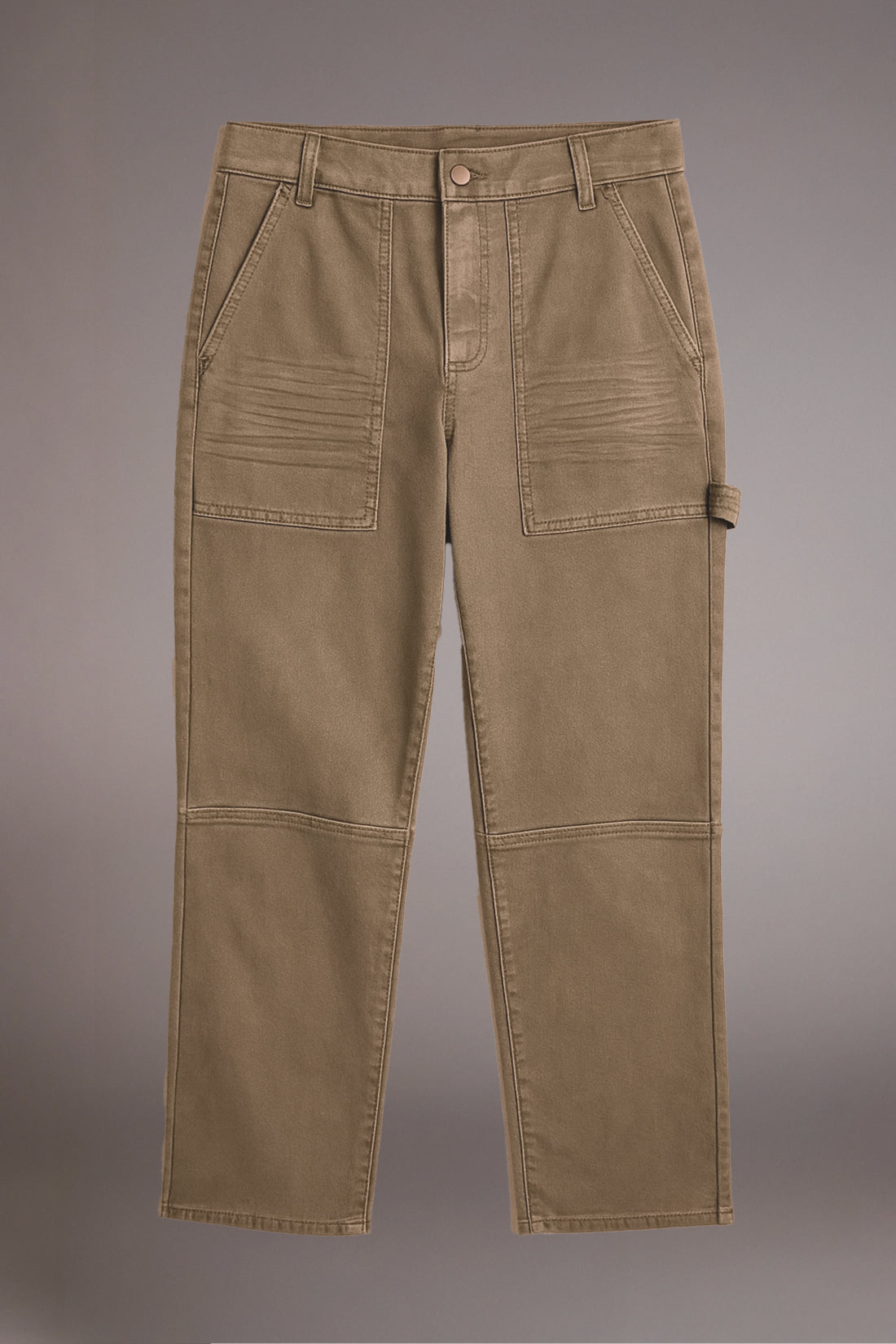 Élevez votre style décontracté avec ce jean à charpentier, doté d'un bouton et d'une fermeture à la braguette pour un ajustement sûr. La taille mi-haute assure le confort et une silhouette flatteuse, tandis que la jambe droite et l'entrejambe de 28 pouces créent un look aérodynamique, tandis que la teinte olive ajoute de la sophistication. Le détail de la boucle de charpentier apporte une touche utilitaire, ce qui fait de ce jean un incontournable de la garde-robe versatile.
