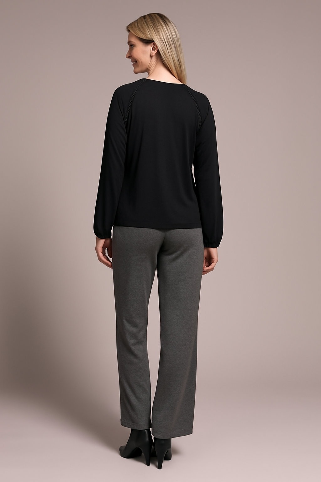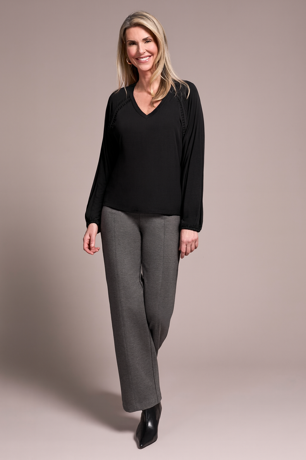Élevez votre tenue du jour avec cette blouse à col en V avec détails plissé sur les épaules. Les manches longues vous donnent de la couverture et le tissu jersey reste toujours doux et confortable.