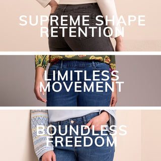 THIS INNOVATIVE JEAN IS ALL YOU’VE BEEN ASKING FOR; AN INCREDIBLY SOFT AND COMFORTABLE FABRIC THAT ALLOWS FOR UNRESTRICTED MOVEMENT, UNLIMITED STRETCH THAT ADJUSTS TO ANY SHAPE AND AMAZING FABRIC RECOVERY TO KEEP LOOKING POLISHED.