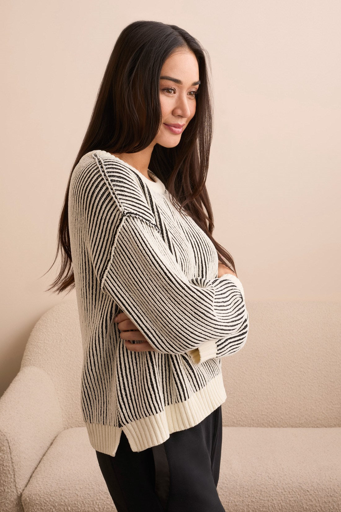 Cozy up in this crewneck sweater made from plaited chenille yarn for a luxuriously soft feel. The two-tone design adds depth and interest, while ribbed detailing at the collar, sleeves and hem brings a polished finish. Side slits offer freedom of movement and ventilation, and the long raglan sleeves provide a relaxed, comfortable fit.
