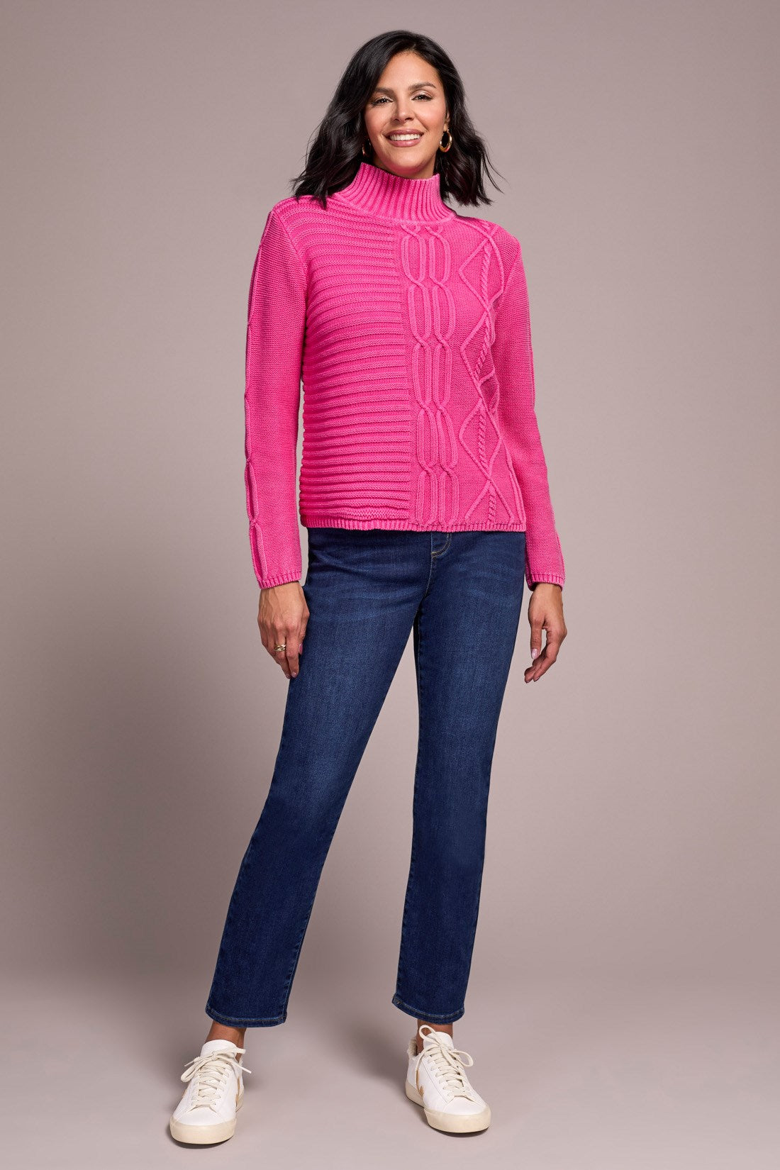 Indulge in cozy comfort with this warm sweater featuring a mock neckline and long sleeves for full coverage. Crafted from soft cotton yarn and finished with a vintage wash, it exudes timeless charm. The loose fit and drop shoulder create a relaxed silhouette, making it perfect for effortless, laid-back style.
